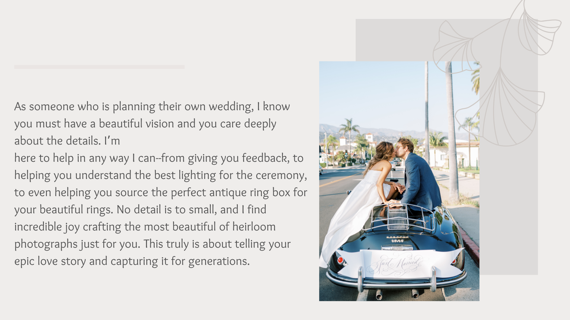 When the day is over, the guests have returned home, the flowers have wilted, and the dress is hanging back in the closet...what will you have left to remind you of one of the most incredible days of your life?